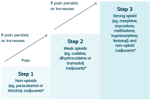 WHO Analgesic Ladder. *Adjuvants can be used along any step of the ladder, these may include antidepressants, anticonvulsants, corticosteroids and anxiolytics.